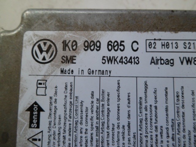 na vw volkswagen golf 5 od roku 2003, řídící jednotka airbagu, 1k0909605C, použité originální autosoučástky z autovrakoviště
